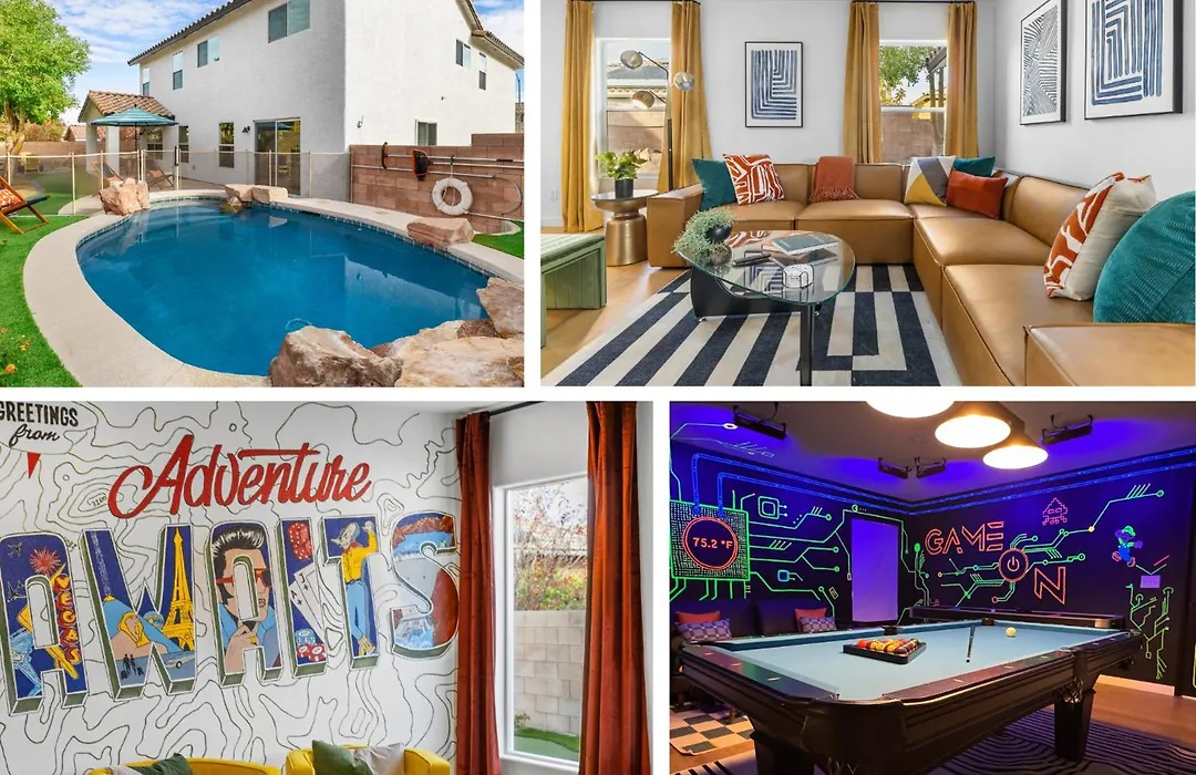 El lugar dispone de una cocina bien equipada, una zona de comedor y un comedor al aire libre. La cocina también dispone de lavaplatos, cafetera/tetera y un horno. El restaurante Ventano Italian Grill & Seafood se encuentra a tan solo 6 minutos a pie. El aeropuerto internacional Mccarran de Las Vegas está a 20 km de esta villa, y la parada de autobús WB está a tan solo 650 metros.