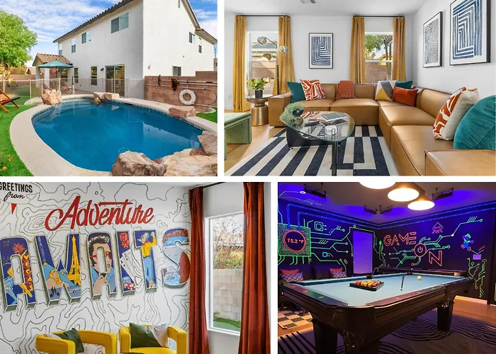 Esta casa de vacaciones se encuentra a 3 km del Parque Cornerstone. Situada en el barrio Henderson, la Villa Adventure Awaits está a 179 km de St. George. El alojamiento ofrece fácil acceso a maravillas naturales como Acacia Demonstration Gardens (3,1 km) y el Complejo Deportivo Arroyo Grande (2 km).